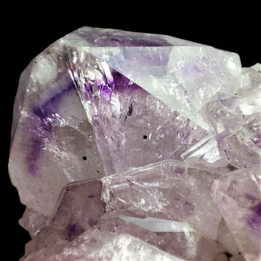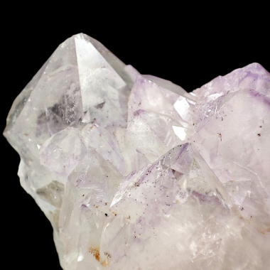 Konkretna szczotka kwarcu z dużymi kryształami górskimi które na swoich szczytach zmieniają się w delikatny fioletowy ametyst.