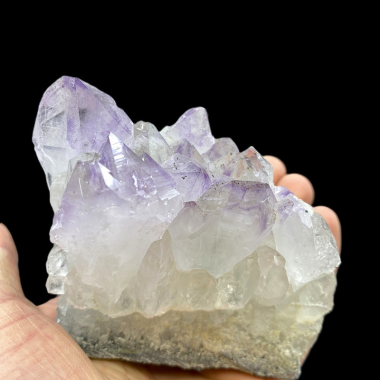 Przedstawiam szczotka kwarcu z dużymi kryształami górskimi które na swoich szczytach zmieniają się w delikatny fioletowy ametyst.