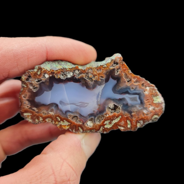 Agat charakteryzuje się charakterystycznych fioletowo-niebieskim chalcedonem, typowym dla agatów z płoczek górnych, który...