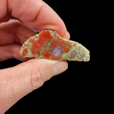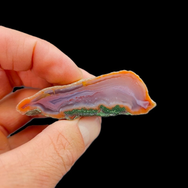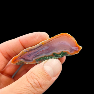 Bardzo ciekawy i nietypowy agat jak na płoczki, dominuje w nim barwa pomaranczowo-czerwona, i dodatkowo do jego wnętrza wnika zielony...