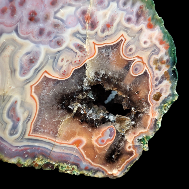 Niesamowita kolorystyka tego agatu przykuwa od razu oka pasjonata minerałów. W tym...