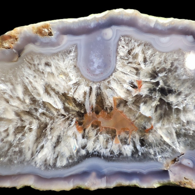 Nietypowy agat jak na Płoczki Górne, ponieważ jego powierzchnie w głównej mierze wypełnia krystalizacja kwarcu o lekko...