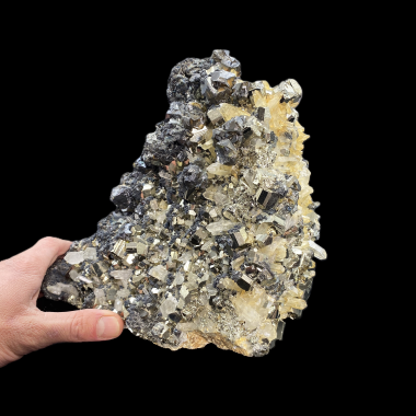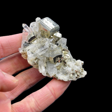 Niesamowity Okaz Kolekcjonerski będący połączeniem błyszczących, idealnie ukształtowanych pirytów osadzonych na szczotce czyściutkich kryształów górskich. Miejscami dodatkowo...