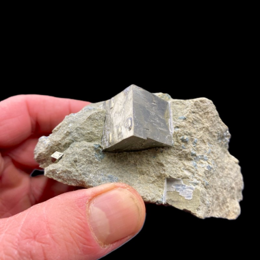 Wyjątkowy okaz Pirytu na skale pochodzący z legendarnej kopalni Navajun w Hiszpanii. Okaz został przez nas osobiście znaleziony w kopalni Navajuni i przywieziony do Polski....