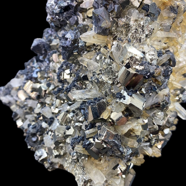 Piękny okaz kolekcjonerski o luksusowym charakterze, ważący niemal 10 kg. Wyjątkowe połączenie szczotki kryształów górskich z złocistym pirytem oraz rzadkim minerałem...