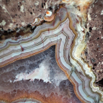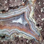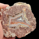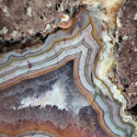 Szlifowany i polerowany minerał Agat pochodzący z okolic miejscowości Nowy Kościół na Dolnym Śląsku. Agat posiada wyjątkowy wzór o charakterystycznym kształcie i kolorystyce typowej dla agatów pochodzących z tej lokalizacji.
