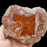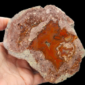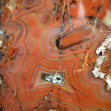 Szlifowany i polerowany minerał Agat pochodzący z okolic miejscowości Nowy Kościół na Dolnym Śląsku. Agat posiada wyjątkowy wzór o charakterystycznym kształcie i kolorystyce typowej dla agatów pochodzących z tej lokalizacji.