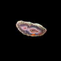 Piękny wzór tego agatu, który na końcu dodatkowo kończy się geodą z kryształkami górskimi. Intensywny fiolet, piękny wzór i czerwień dookoła geody nadają niesamowitego charakteru temu agatowi.