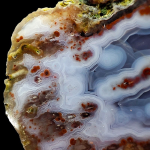 Ciężko powiedzieć jednoznacznie co dzieje się w obrazie tego niesamowitego agatu. Jak wzór przypomina jakby świecącą meduzę unoszącą się w wodach oceanów. Zdecydowanie ten okaz wyróżnia się swoim wzorem na tle innych agatów co czyni go wartościowym okazem kolekcjonerskim.