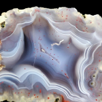 Piękny agat z pięknym wzorem, na którego powierzchni występują podatkowe czerwone kropeczki (prawdopodobnie inkluzje hematytu)