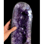 Witam serdecznie, Do sprzedania mam wyjątkową geodę z wielkimi kryształami o bardzo intensywnym ciemnym fiolecie. Na prawdę rzadko trafiają się geody o z tak dużymi kryształami i tak pięknie wybarwionymi. Średnica dużych kryształków waha się od 2-3 cm. Największy jaki udało mi się zmierzyć ma aż 3,3cm :) Niezwykły okaz! Wymiary Geody: Wysokość 47 cm Szerokość 19 cm Głębokość 16 cm Waga: 18 kg POCHODZENIE: URUGWAJ Ametyst polecany jest dla Znaków zodiaku: Baran, Koziorożec