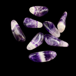 Ametys Chevron - To wyjątkowa odmiana Ametsytu, która charakteryzuje się naprzemienną kolorystyką fioletowych, jasno-fioletowych i białych barw. Które często układają się w naprzemiennych warstwach (biało-fioltetowych).