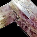 Minerał na skrajach posiada barwę w odcieniach szarości,a w po środku kryształu występuje zabawnie delikatnie fioletowe, co daje insertujący efekt wizualny.