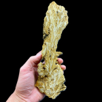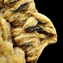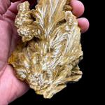 Prezentowany okaz ma aż 24 cm i został jednostronnie oszlifowany, co w rezultacie pokazuje nam dwa oblicza tego niezwykłego minerału. Z jednej strony mamy naturalne skupienia kryształów barytu, przyprószone miejscami pirytem, a z drugiej oszlifowanej strony tworzy nam się niesamowity wzór, przypominający egzotyczną roślinę.