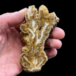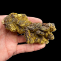 Prezentowany okaz został jednostronnie oszlifowany, co w rezultacie pokazuje nam dwa oblicza tego niezwykłego minerału. Z jednej strony mamy naturalne skupienia kryształów barytu, dodatkowo pokryty chalkopirytem a z drugiej oszlifowanej strony tworzy nam się niesamowity wzór, przypominający egzotyczną roślinę.