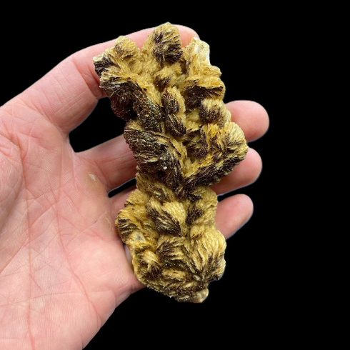 Niesamowity okaz barytu, pokryty na powierzchni drobniutkimi kryształkami, kolorowego chalkopirytu. Okaz pochodzący z polskich kopalni KGHM w okolicy Lubina. Skupienia tabliczkowych kryształów barytu zwane są "Różami Barytowymi" i to właśnie z polskich kopalni róże barytowe uważaną są za jedne z najpiękniejszych na świecie, tym bardziej, że często pokryte są jeszcze drobniutkimi kryształami pirytu.
