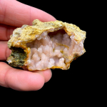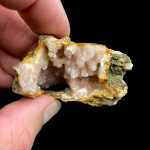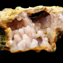 Przedmiotem oferty jest otwarta geodka, wypełniona bulwiastym chalcedon w formie stalaktytowych słupków.
