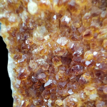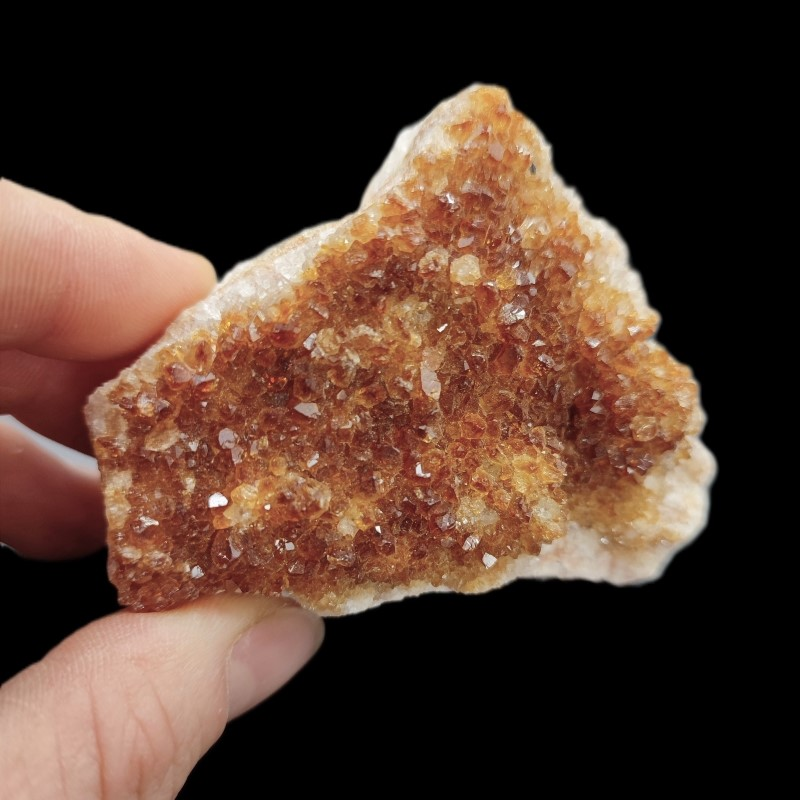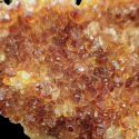 Oferowany minerał to szczotka drobniutkich kryształów. Od spodu mają zabarwienie żółte, a na czubkach kryształów ciemno bursztynowe