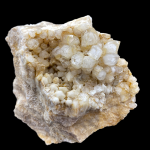 Przedmiotem oferty jest bardzo ciekawi ukształtowany okaz. Na skale macierzystej w 3 miejscach wykrystalizowały szczotki z kryształami górskimi. Najbardziej efektowny jest szczyt okazu gdzie mamy gniazdo z dużymi, bardzo transparentnymi i ładnie ukształtowanymi kryształami górskimi, które częściowo mieszkając się kryształami kwarcu mlecznego. Kryształy dodatkowo są miejscami zabarwione na pomarańczowo przez tlenki żelaza.