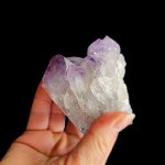 Przedstawiam szczotka kwarcu z dużymi kryształami górskimi które na swoich szczytach zmieniają się w delikatny fioletowy ametyst. Szpice kryształów bardzo ładnie ukształtowane, w szczególności 1 duży, który wybija się z powierzchni pozostałych kryształów na szczycie okazu. Kryształ stoi stabilnie, dzięki czemu ładnie się prezentuje jako dekoracja czy element kolekcji minerałów. WYMIARY: Wysokość 7 cm Szerokość: 7 cm Grubość: 4 cm Waga: 330 gram POCHODZENIE: BRAZYLIA Kamień 100% NATURALNY Znaków zodiaku: Bliźnięta, Lew