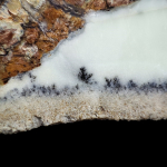 Dzięki przełamowi w tym minerale, widzimy jak dendryt rozchodzi się wewnątrz okazu.