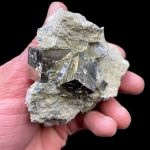 UWAGA: Skałą macierzysta w której wykrystalizował piryt jest delikatna i podatna na uszkodzenia oraz przede wszystkim na naturalny proces wietrzenia. Dlatego nie należy namaczać okazu, nie wolno myć wodą, ani przesuszać, ponieważ może dochodzić pękania skały macierzystej oraz odłupywania się jej kawałków w związku z czym kryształy pirytu mogą z niej po prostu wypaść. Każdy jeden okaz został przeze mnie odpowiedni przygotowany - wszystkie szczeliny, pęknięcia, oraz miejsca w których znajdują się kostki zostały wzmocnione specjalnym preparatem uszczelniająco-klejącym, dzięki czemu cały okaz trzyma się stabilnie i kostki nie wypadają. Nie mniej jednak należy zachować szczególną ostrożność przy obchodzeniu się z okazem aby go nie uszkodzić.