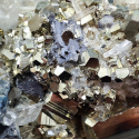 Niesamowity Okaz Kolekcjonerski będący połączeniem błyszczących, idealnie ukształtowanych pirytów o różnej wielkości z kryształami górskimi oraz galeną. Piryty najwyższej jakości o różnych kształtach i rozmiarach, od drobniutkich po pojedyncze duże. Balejaż minerałów rozlewa się po całej powierzchni tworząc niesamowity i wartościowy okaz kolekcjonerski. Wymiary: Długość: 13 cm Szerokość: 9 cm Wysokość: 5 cm Waga: 570 gram POCHODZENIE: BORNEO - INDONEZJA Kamień 100% NATURALNY Znaków zodiaku: Lew, Baran, Bliźnięta, Koziorożec